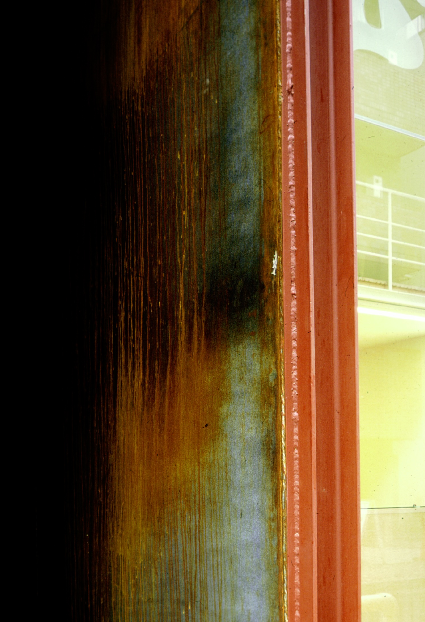 この様に、鋼板を仕上げと構造に共用することで、より効率の良いスレ ンダーな架構となっているといえる。 また、施工計画上、この建物の敷地形状が1面道路、3面隣地(両隣が店鋪)ということもあって、 短期間(2日程度)で境界いっぱいに建方を行う必要があった。