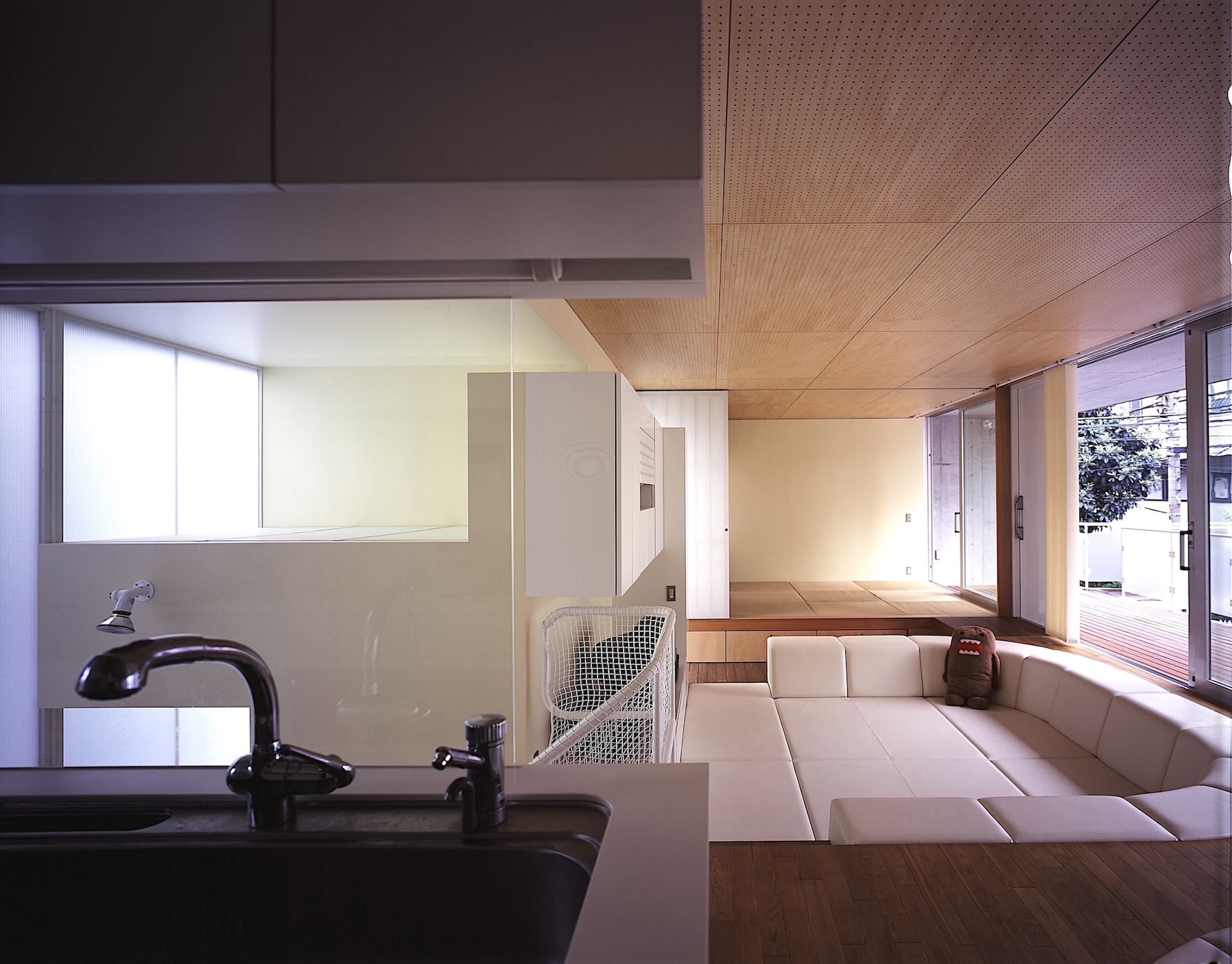 田園都市に建つ住宅のように解放性を求めるのは、商業地域の中に建つ住宅の答ではないし、コートハウスのように閉じた世界をつくるというのは、すでに答が出ています。私達はもう少し街と関係を持ちながら、プライバシーも守れる都市型住宅の答を出したかったのです。